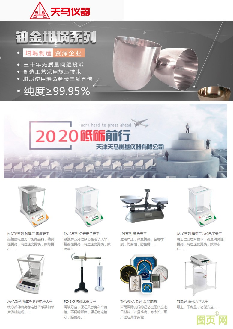 天津天馬衡基儀器有限公司-主要生產電子天平、分析天平、靜水力學天平、液體比重天平、托盤扭力天平、架盤天平;白金坩堝、鉑金坩堝、銀坩堝等點擊:628 查看原圖![]() ![]() ![]() 簡介: