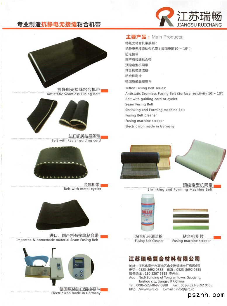 江蘇瑞暢復合材料有限公司 特氟龍粘合機帶 特氟龍耐高溫防粘布墊 特氟龍網格輸送帶點擊:412 查看原圖![]() ![]() ![]() 地 址:江蘇省泰州市高港區永安洲鎮標準廠房區6號