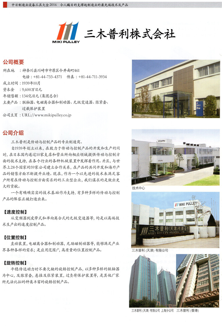 三木普利(天津)有限公司 _變速機_聯軸器_電磁離合器_制動器_轉數指示儀點擊:2413 查看原圖![]() ![]() ![]() 總公司
