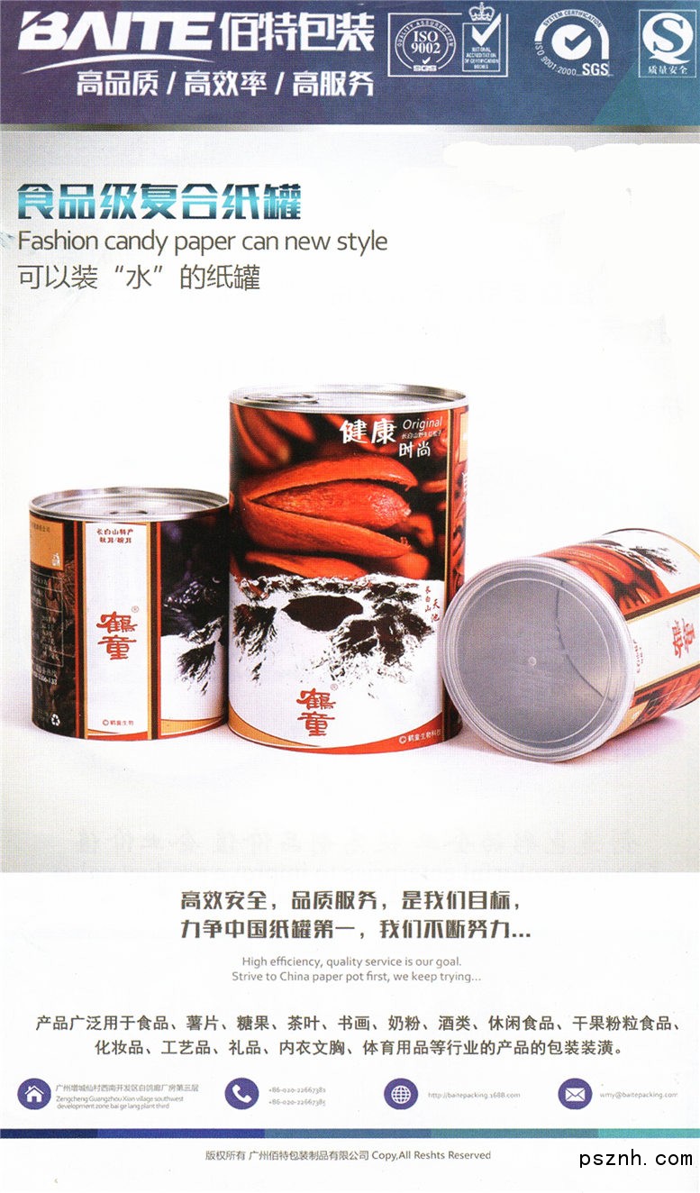 廣州佰特包裝制品有限公司 紙罐 食品包裝紙罐 茶葉包裝紙罐點擊:562 查看原圖![]() ![]() ![]() 廣州佰特包裝制品有限公司