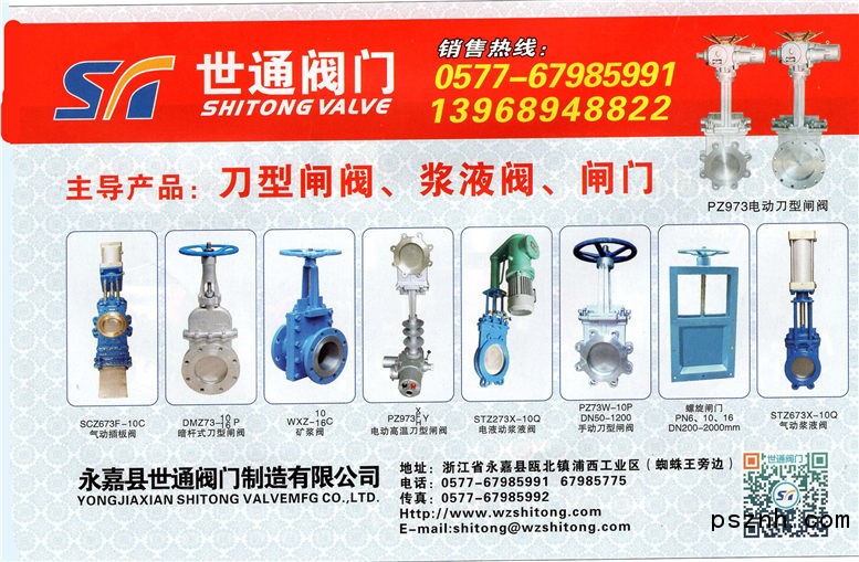 永嘉縣世通閥門制造有限公司 漿液閥 排渣閥 刀型閘閥點擊:619 查看原圖![]() ![]() ![]() 永嘉縣世通閥門制造有限公司