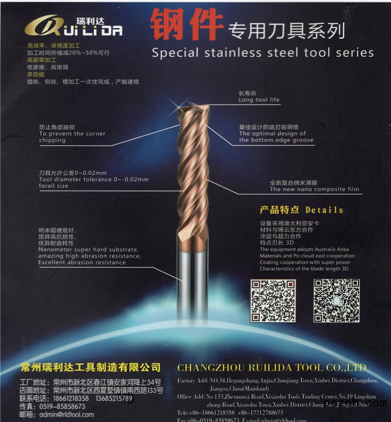 電 話:0519-85858673 傳 真:0519-83441776 聯系人:朱經理 手 機:13685215789 網 址:www. Rldtool.com |