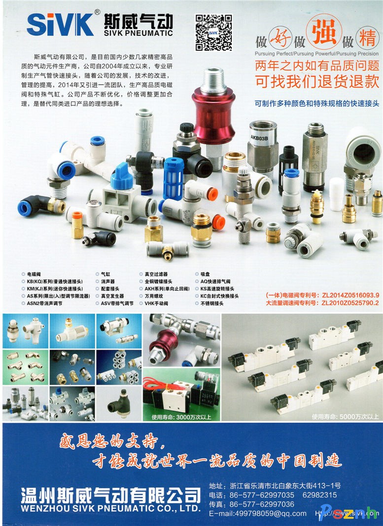 溫州斯威氣動有限公司_方向控制閥_執行元件 (氣缸)_空氣處理元件_真空設備_輔助氣動元件點擊:2237 查看原圖![]() ![]() ![]() 溫州斯威氣動有限公司
