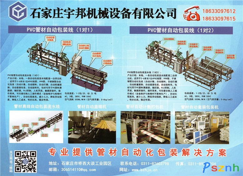 石家莊宇邦機械設備有限公司 管業半自動 全自動包裝生產線 不干膠自動貼標點擊:619 查看原圖![]() ![]() ![]() 公司地址位于河北省石家莊市紅旗大街566號倉安工業園區內