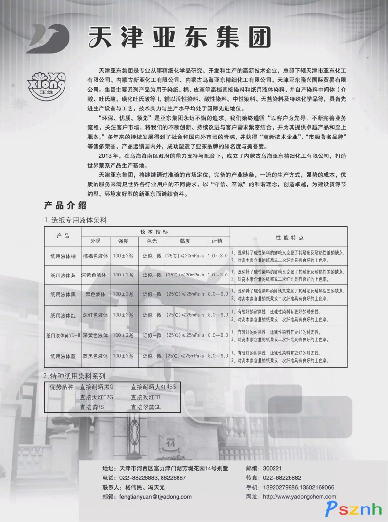 天津市亞東化工有限公司 高檔直接染料_紙用染料_活性染料