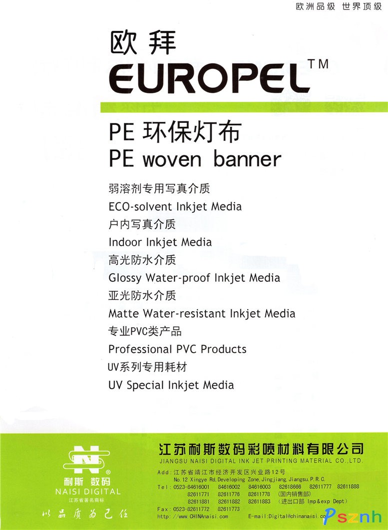 弱溶劑寫真介質 _影像圖文類產品_超寬幅打印耗材-江蘇耐斯數碼科技股份有限公司點擊:2928 查看原圖![]() ![]() ![]() 地址:江蘇省靖江市興業路12號 電話:86-523-82611771 傳真:86-523-82611772