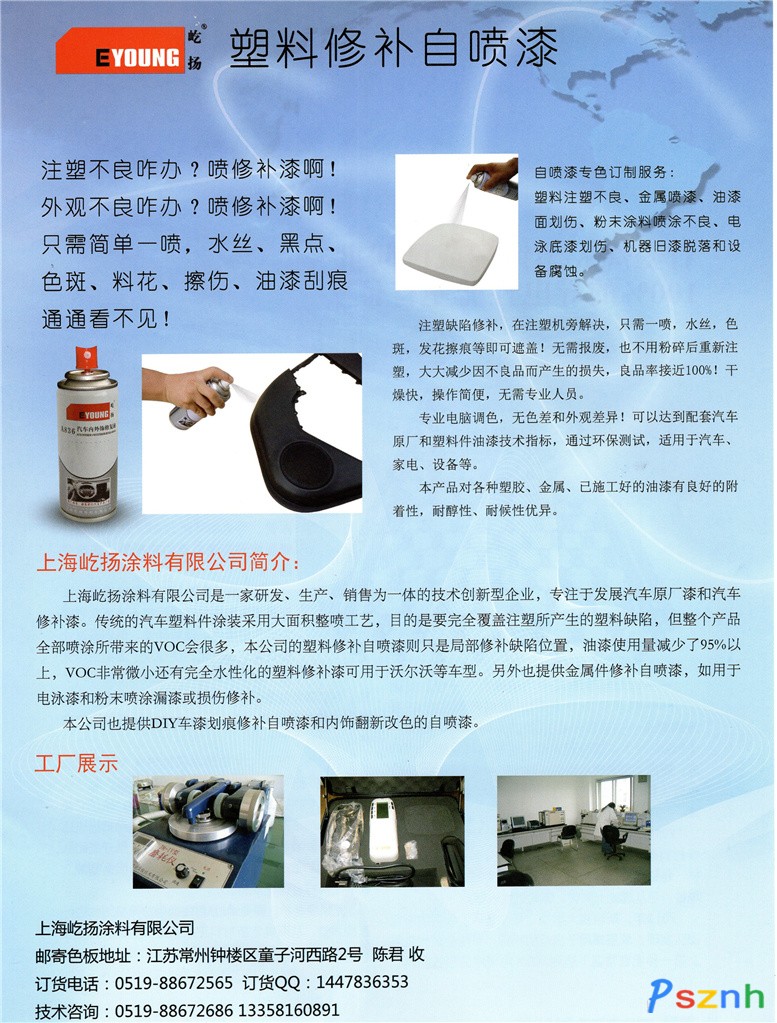 塑料_金屬涂料_塑料涂裝-上海屹揚涂料有限公司點擊:816 查看原圖![]() ![]() ![]() 地址:江蘇省常州市三河口鎮 服務熱線:0519-88672686 88672565 傳真:0519-88672686
