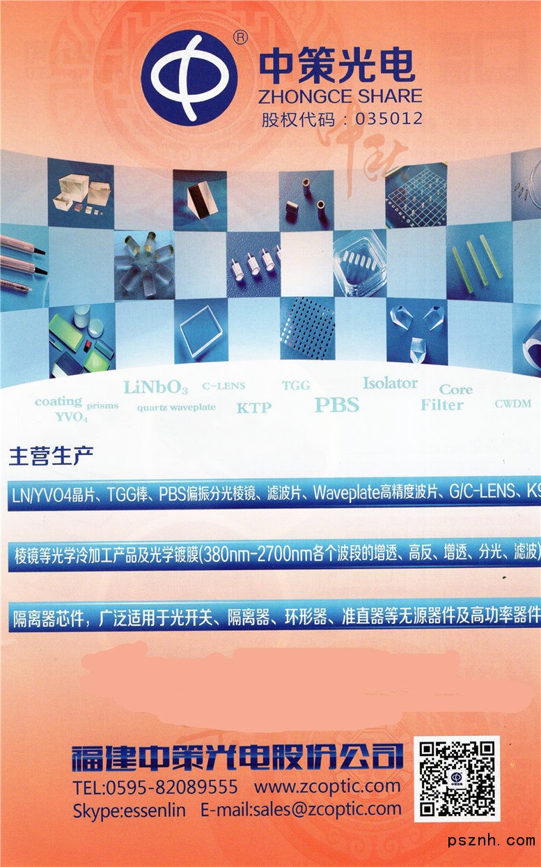 福建中策光電股份公司 光學光通信晶體元器件點擊:1004 查看原圖![]() ![]() ![]() 福建中策光電科技有限公司