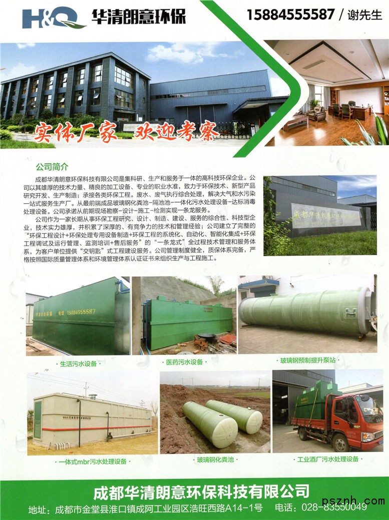 成都華清朗意環??萍加邢薰? 酒廠污水處理設備_食品污水處理設備_玻璃鋼化糞池設備點擊:819 查看原圖![]() ![]() ![]() 辦公地址:成都市金堂縣淮口鎮成阿工業園區浩旺西路A14-1號 業務咨詢電話:028-83550049手機:15884555587聯系人:謝總生產廠址:成都市金堂縣淮口鎮成阿工業園區浩旺西路A14-1號