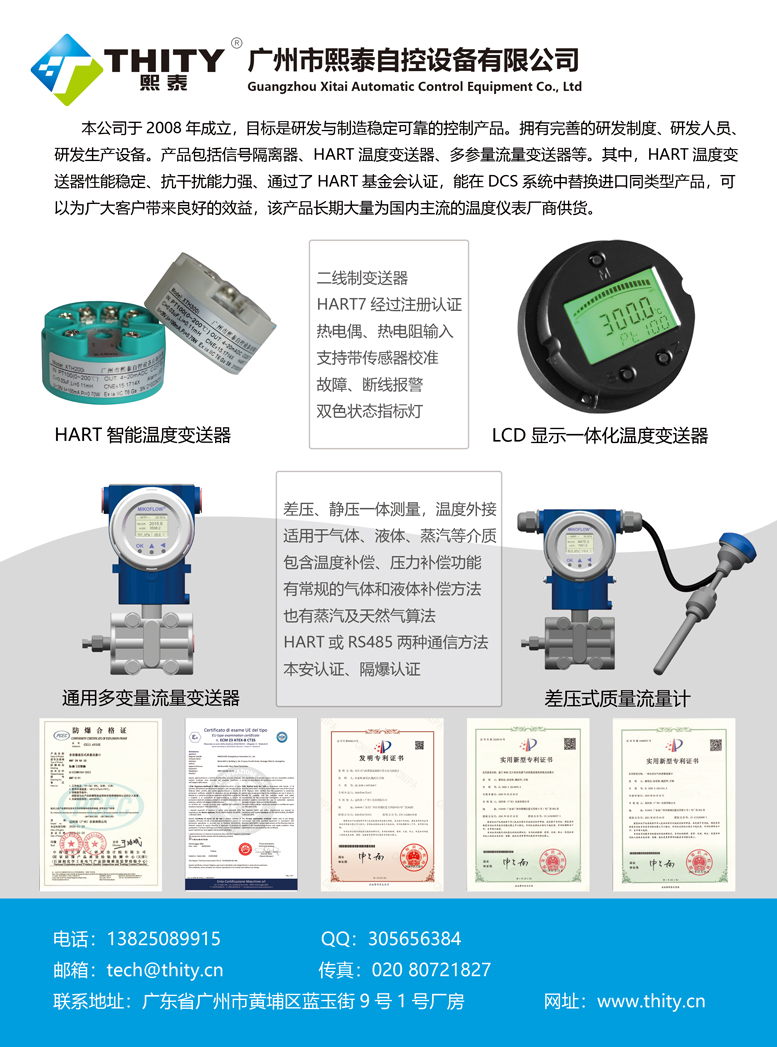溫度變送器_信號變換器_安全柵_多國儀表展-廣州市熙泰自控設(shè)備有限公司點(diǎn)擊:3420 查看原圖![]() ![]() ![]() 簡介: