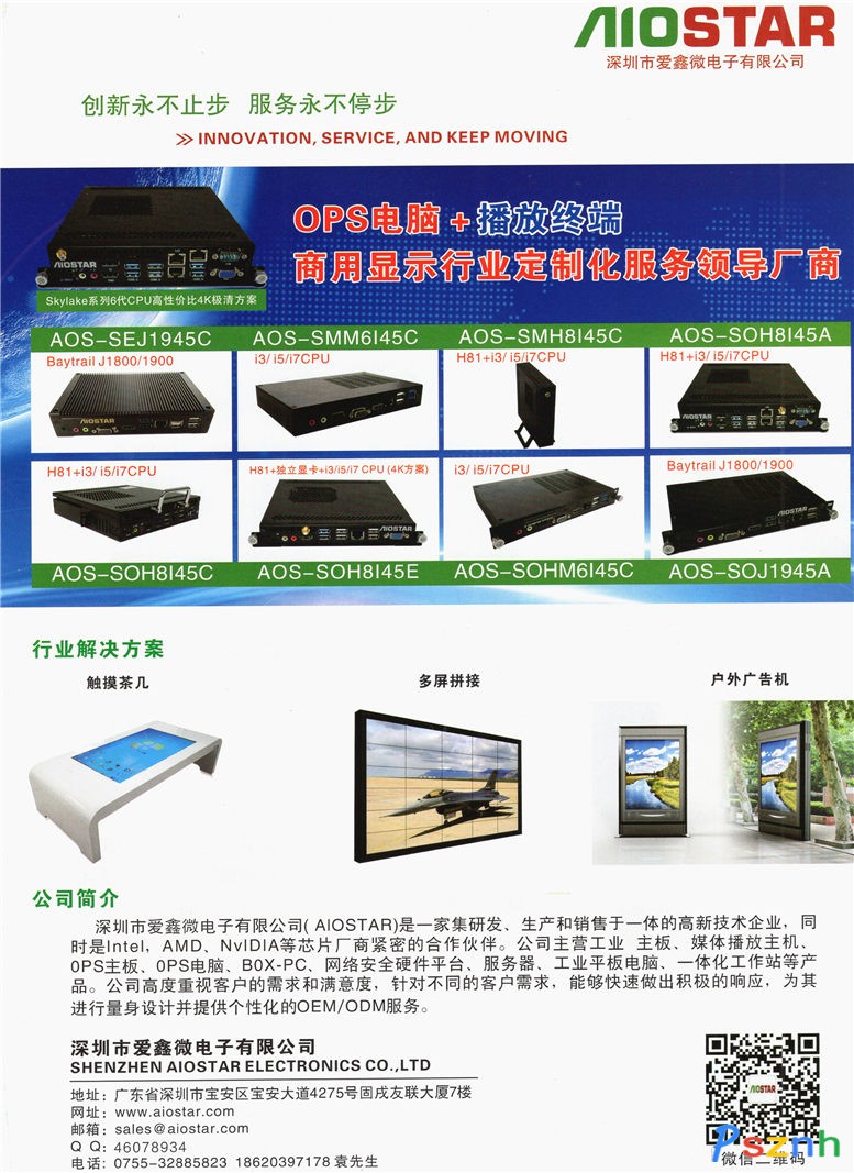 深圳市愛鑫微電子有限公司 媒體播放主機 OPS主機 OPS可插拔式電腦模塊點擊:1466 查看原圖![]() ![]() ![]() 深圳市愛鑫微電子有限公司 版權所有 Shenzhen Aiostar Technology Co.,Ltd All Rights Reserved.