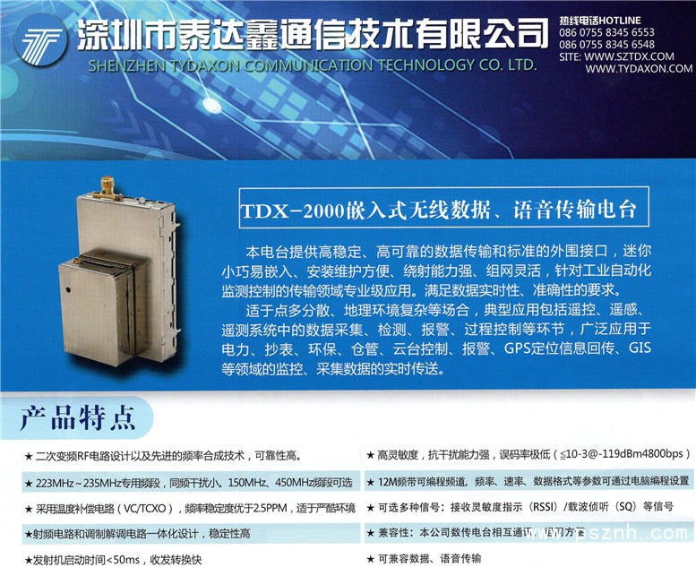| 聯系方式: | 0755-83456580 | 官方網址: | www.tydaxon.com |