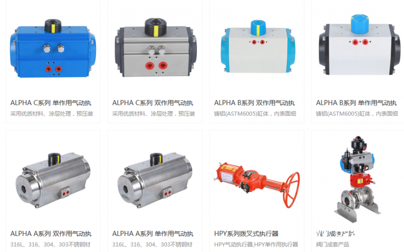 公司現(xiàn)有現(xiàn)在四大系列執(zhí)行器,阿爾法A系列不銹鋼執(zhí)行器,阿爾法B系列鋁合金執(zhí)行器,阿爾法C系列鋁合金執(zhí)行器,HPY系列撥叉式執(zhí)行器,離合式手輪機(jī)構(gòu),閥 位反饋裝置,過(guò)濾減壓閥等閥門控制附件。現(xiàn)有∅32~ ∅ 800近20多個(gè)規(guī)格,扭矩從5Nm~300000Nm都有覆蓋。 |