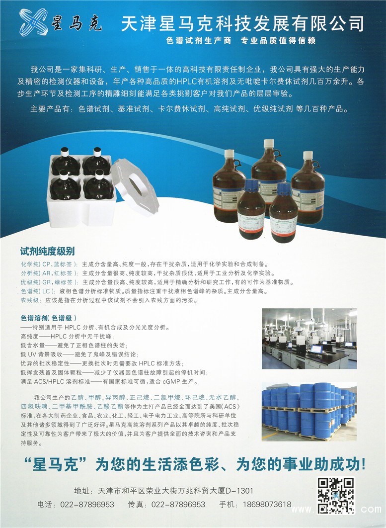 天津星馬克科技發展有限公司 色譜試劑、基準試劑、卡爾費休試劑、高純試劑、優級純試劑等點擊:536 查看原圖![]() ![]() ![]() 地 址 天津市和平區萬兆科貿產業大廈D座1301 傳 真 022-87896953 . 電 話 022-87896953 網 址 http://www.starmarx.com/ |