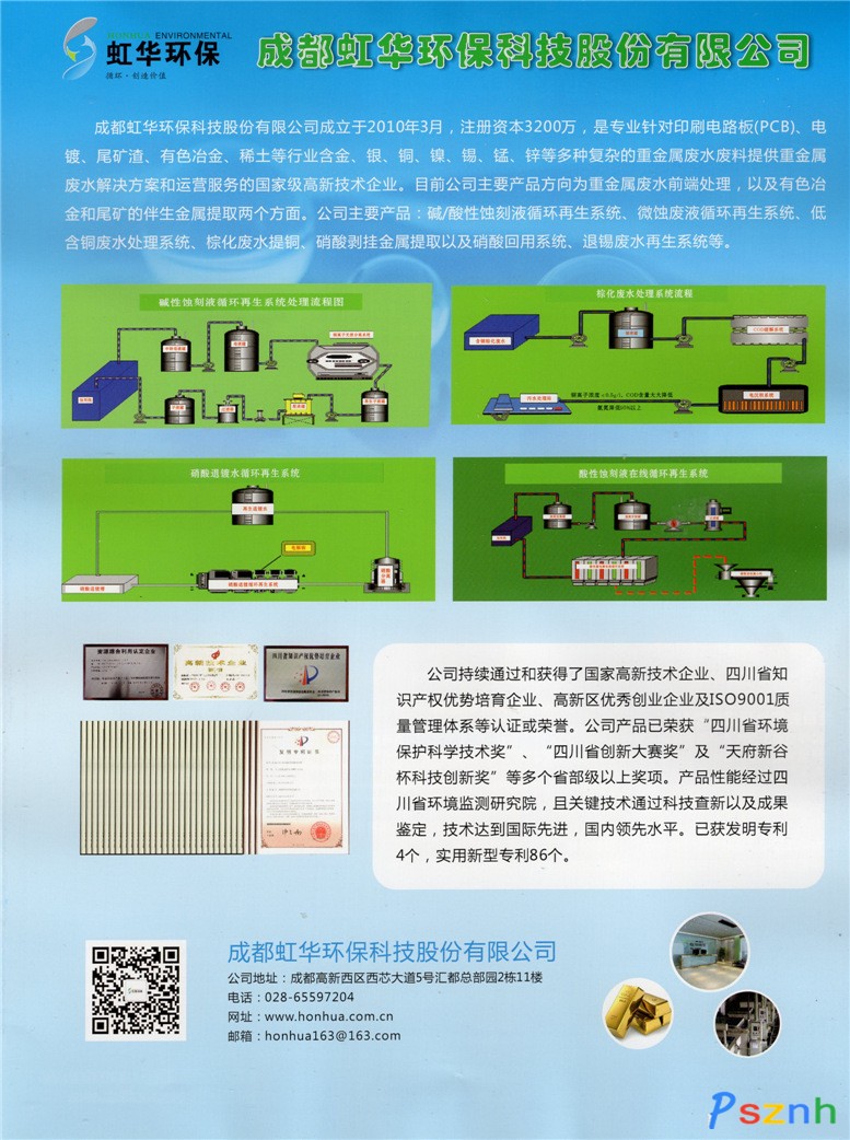 成都虹華環保科技股份有限公司 PCB蝕刻液 銅廢水處理點擊:1395 查看原圖![]() ![]() ![]() 公司名稱:成都虹華環保科技有限公司