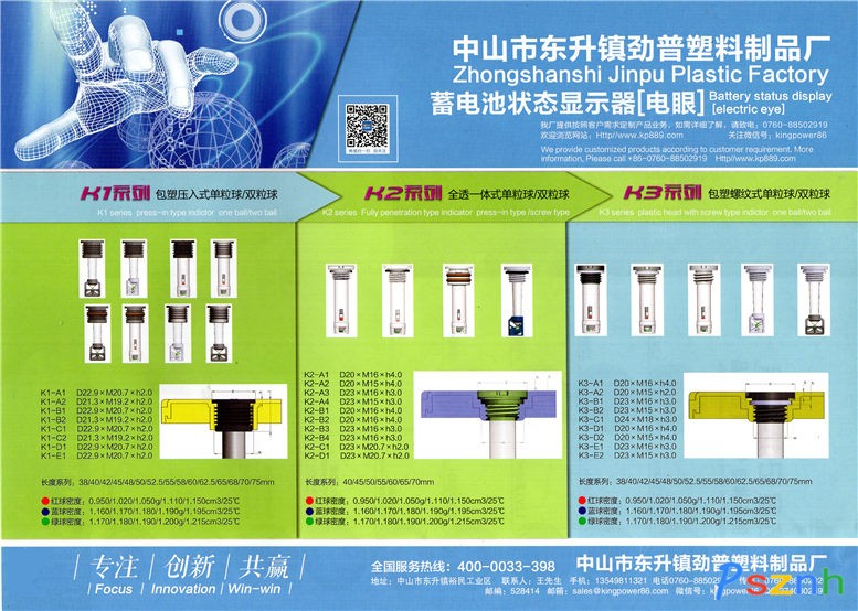 中山市東升鎮勁普塑料制品廠 _汽車蓄電池狀態顯示器_蓄電池電池殼點擊:1856 查看原圖![]() ![]() ![]() 所在地:東升鎮裕民廣豐圍工業區
