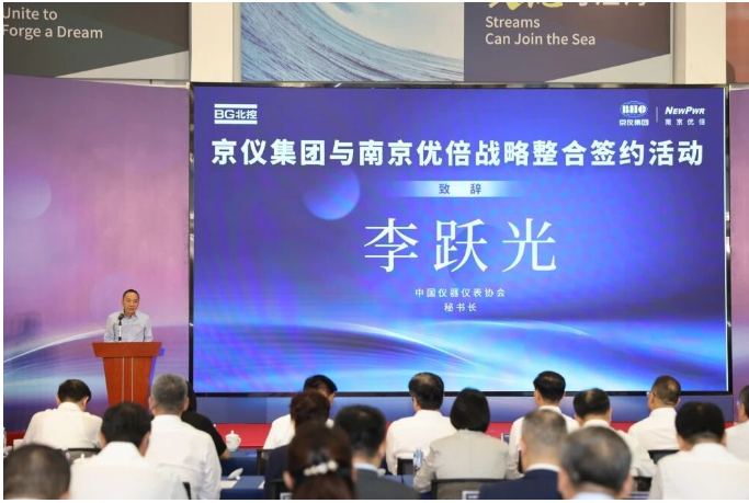 在北控集團、江寧區(qū)及江寧開發(fā)區(qū)有關領導,中國儀表儀表學會、協(xié)會,儀綜所,清華大學精密儀器系,上海自動化院,南陽防爆所,中國石油和化工自控專委會,國標委TC124\SC2等行業(yè)專家,康吉森、科遠智慧、菲尼克斯和天康集團等國內儀器儀表行業(yè)重點企業(yè)負責人共同見證下,京儀集團與南京優(yōu)倍完成戰(zhàn)略整合簽約。