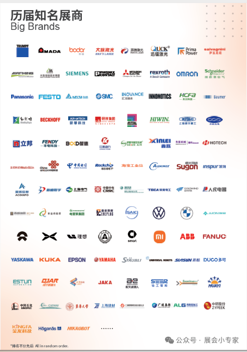機器人展2012年設立機器人展區,2013年首次獨立設主題展為工業機器人展,2015年更名為機器人展。機器人展每年一屆,已經成為行業發展風向標,被認為是世界機器人領域具魅力的專業展會之一。展品大類:工業機器人整機、系統集成應用、核心部件、服務機器人、特種機器人。歷屆知名展商:ABB、FANUC、KUKA、安川電機、川崎、史陶比爾、那智不二越、Rethink Robotics,現代重工、松下、歐地希、柯馬、優傲機器人、新松、廣州數控、埃斯頓、埃夫特、新時達、博眾、賽騰、華昌達、大疆、中信重工、配天、亞威徠斯、李群自動化、固頂、沃迪、高威科、雄克、速德、三菱電機、雅馬哈、愛普生、電裝、東芝機械、車樂美、東部機器人、艾衛艾、羅普伺達、納博特斯克、拉法特、哈默納科、電產新寶、昂華、華太、福賽特、錢江機器人、達意隆、東佑達、眾為興、上海機器人產業園、眾拓等。