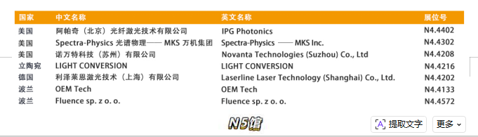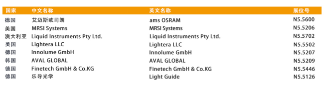 僅羅列部分,更多展商及展品請至慕尼黑上海光博會(huì)在線會(huì)刊