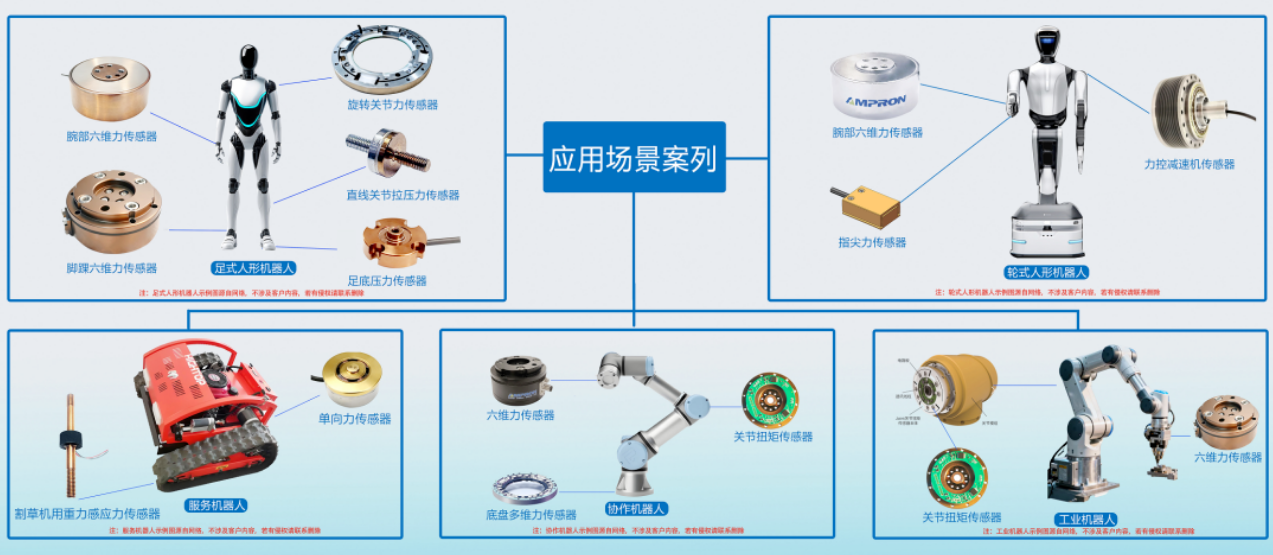 本次機器人行業年會上,安培龍展示了針對機器人不同關節、部位與應用場景的全系列力傳感解決方案,同時含括了MEMS硅基應變片+玻璃微熔及金屬應變片兩種技術路線產品,具體包括: