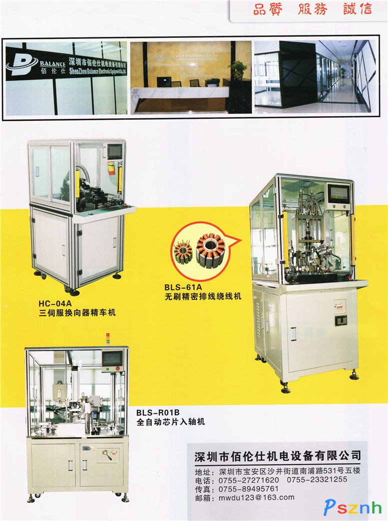 深圳市佰倫仕機電設備有限公司是轉子平衡機、換向器精車機、非標自動化設備制造等產品專業生產加工的公司,擁有完整、科學的質量管理體系。   佰倫仕成立后十分重視引進國內外先進技術,廣納高端自動化設備研究人才,實現了及全自動轉子減料平衡機 換向器精車床等多種馬達設備及相關的開發 生產 銷售和技術咨詢的一體化公司。   佰倫仕始終堅持貫徹以人為本 已質量求生存 以誠信求展發的觀念認證貫徹國家的質量認證體系 不斷擴展國內外市場,本公司開發、生產的全自動轉子減料平衡機、換向器精車床的產品,是目前同行業中公認的技術含量高 性能好的點擊生產設備。佰倫仕始終堅持以客戶需要為中心,以最佳的性價比產品‘最完善的服務為廣大國內外新老客戶提供系統化’專業化的產品服務。   佰倫仕將不斷總結經驗 以一流的生產設備、一流技術人才、一流的服務的三個一流為本,為你打造一流的品牌。我們本著“同等質量價格最低,同等價格質量最優”的服務宗旨,竭誠歡迎國內外廣大新老客戶蒞臨指導 攜手共創輝煌。