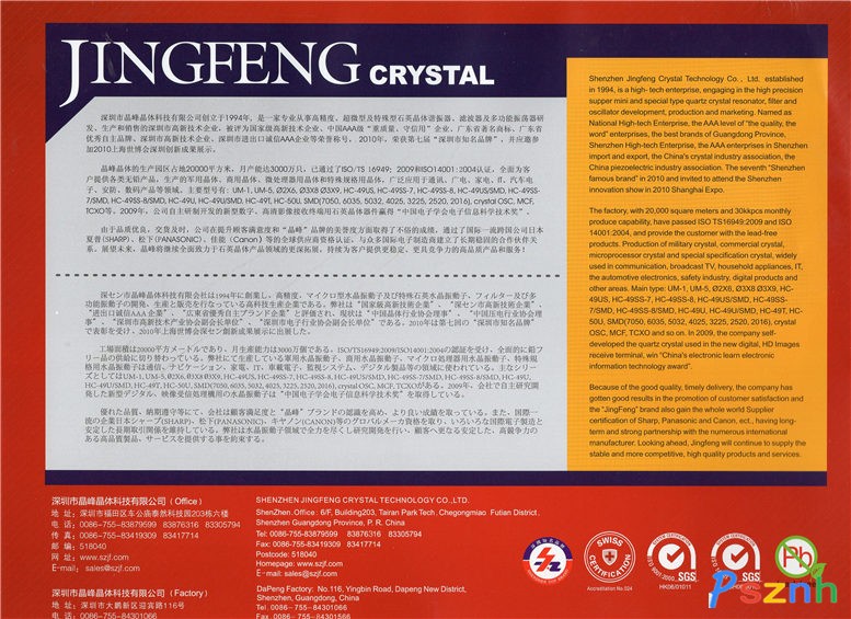 由于品質優良,交貨及時,公司在提升顧客滿意度和“晶峰”品牌的美譽度方面取得了不俗的成績,通過了國際一流跨國公司日本夏普(SHARP)、松下(PANASONIC)、佳能(Canon)等的全球供應商資格認證,與眾多國際電子制造商建立了長期穩固的合作伙伴關系。展望未來,晶峰將繼續全面致力于石英晶體產品領域的更深拓展,持續為客戶提供更穩定、更具競爭力的高品質產品和服務!