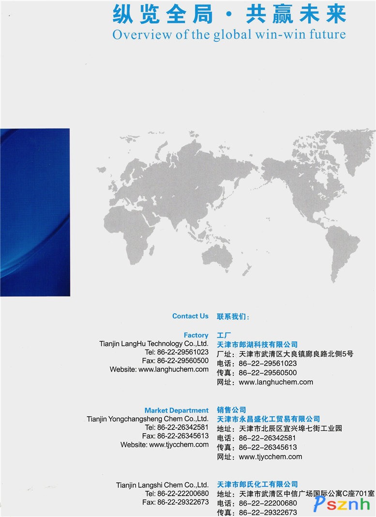 以郎湖化工為生產基地,天津市永昌盛化工貿易有限公司和郎氏化工為其下屬的化工經營企業,擁有獨立的倉儲運輸,成熟的市場網絡,逐漸成為國內外頗具規模的塑料、橡膠、涂料、鑄造、紡織、造紙企業的專業原料供應商。我們將一如既往的服務于客戶,期待著與您共同成長,共創輝煌!
