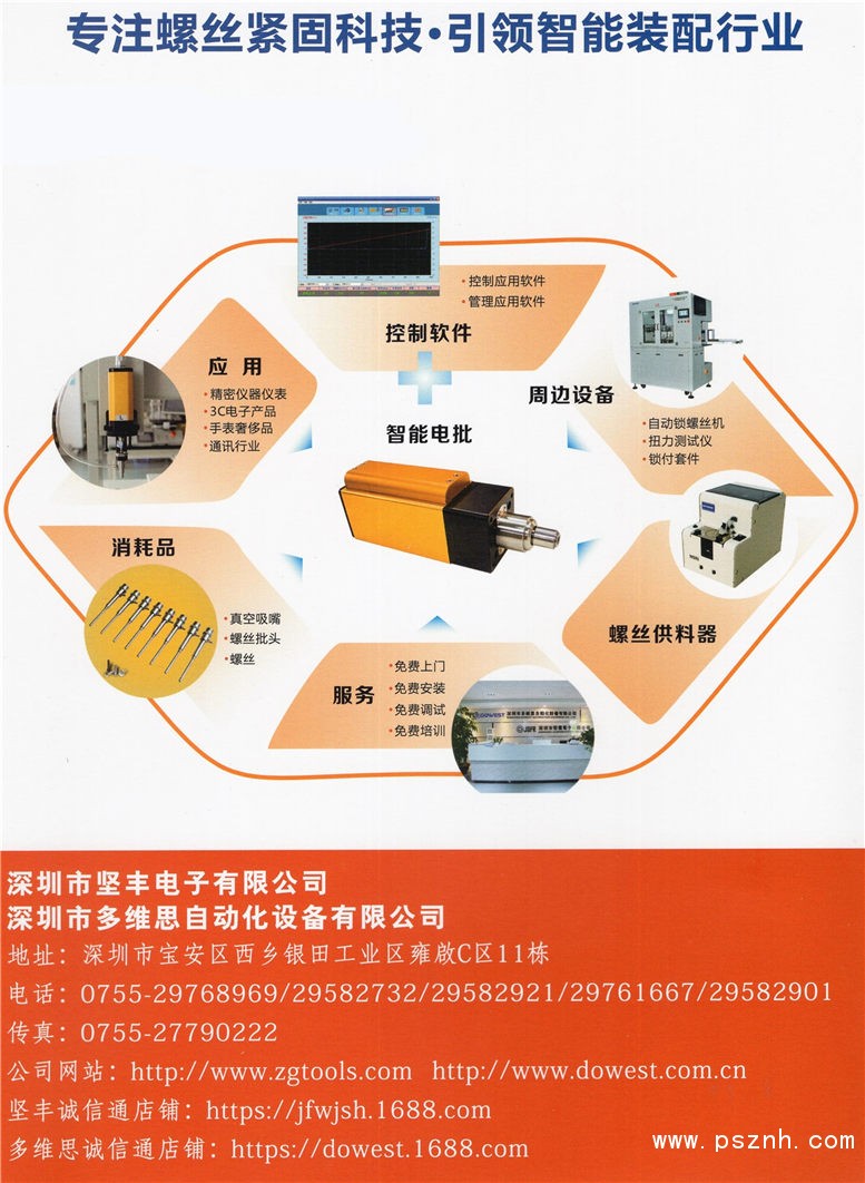 深圳市堅(jiān)豐電子有限公司--“螺絲緊固方案專家”,旗下制造工廠深圳市多維思自動(dòng)化設(shè)備有限公司,擁有先進(jìn)的生產(chǎn)設(shè)備、雄厚的科研技術(shù)團(tuán)隊(duì)、完善的管理體系。工廠主要以研發(fā)、生產(chǎn)、銷售、服務(wù)為一體的自動(dòng)化解決商。產(chǎn)品涉及到緊固、焊接、流體、機(jī)械手裝配、非標(biāo)智能自動(dòng)化等。為全球各大工業(yè)電子、電器、照明、通訊、汽車等行業(yè)廠商解決生產(chǎn)效率難題。同時(shí)也是國(guó)內(nèi)擁有最全最完整的自動(dòng)化產(chǎn)業(yè)鏈企業(yè)之一。