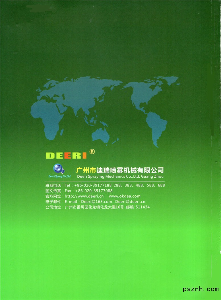 廣州市迪瑞噴霧機械有限公司(Deeri Spraying Mechanics Co.,Ltd.Guang Zhou)是中國技術領先的噴霧設備、自動噴霧系統及附件的產品生產研發、銷售商,專業從事自動噴霧系統的技術及噴霧技術工程的綜合性解決方案。我們引進國外先進生產工藝和技術,針對使用比較普遍,應用比較多的進口噴嘴進行國內開發生產,性能及各類技術參數完全符合進口產品的要求。公司提供的上十萬多個品種規格的噴嘴,以及相關產品和噴霧自動控制系統成套技術設備,滿足了不同行業的需要,并為其提供優質、快捷、便利的服務。我們始終專注于噴霧技術,并通過噴霧系統的最優化為客戶提高質量、降低企業經營成本。 公司依托綜合性人才和科技資源優勢,歷經多年的市場風雨。我公司的企業宗旨是“承擔歷史責任,推動社會進步”,在“自強不息、厚德載物”和“文行忠信、恭寬敏惠”的指引下,以“品牌、資源、資金”為發展支點,以“簡單、高效、健康”為管理思想,突出主營業務方向,形成了三大業務群組:力求以多樣化的產品、系統化的技術應用和服務,多層次、持續性地滿足用戶的不斷需求。http://www.sprayco.cn 公司的噴霧系統及系統項目集成工程,包括:自動化控制技術霧化系統,降溫系統,清洗系統,除塵系統,加濕系統,造景系統,脫硫廢氣處理系統,冷卻系統,空氣凈化系統,噴淋系統,農業灌溉系統等在礦業,冶金,化工,電子,食品,醫藥,水泥,環保,汽車,電廠,農業,機械,鋼鐵等廣泛行業領域取得非常良好的項目成績!http://www.deeri.cn 公司提供的噴霧產品已深入廣泛地運用于現代化工業行業各領域,為這些行業領域的企業提高經營效率、減少冗余環節、提升產品品質及改進工藝作出了卓越的貢獻,不僅如此,公司在擁有自主噴霧產品技術研發的厚實根基上,進一步大力致力研制了各種成套噴霧設備、噴霧系統,并為承致于自動噴霧系統工程項目的解決方案工程實施。http://www.lin-s.cn 現在的廣州市迪瑞噴霧機械有限公司,不僅是各類品種規格齊全的噴霧產品的先初供應商,更是集成噴霧設備機械、噴霧系統、自動噴霧系統項目工程綜合于一體之多元化產業鏈的原始供應商、工程方案建設實施商,我們運用先進的噴霧技術能力,不僅從噴霧單品產品線上亦從噴霧設備、噴霧系統、自動噴霧系統工程項目方案深化定制為企業客戶全方位的解決之所需。未來的時代企業一如既往地充滿活力,繼續孜孜不倦地專注于噴霧行業每一朝夕! 公司為中國南方航空、鐵道部下屬公司、艾默生動力傳動、霍尼韋爾、松下·萬寶、建華管樁建材、環球石材、東風汽車、比亞迪股份公司、安能集團、中國石化下屬公司等諸多世界強級在華公司或子公司供應噴霧產品及配套噴霧系統,并是廣州漢溪長隆集團長隆歡樂世界的長期噴霧系統合作供應商。公司連續地高速增長發展,更顯現出其企業旺盛的生命力和巨大的發展潛力!