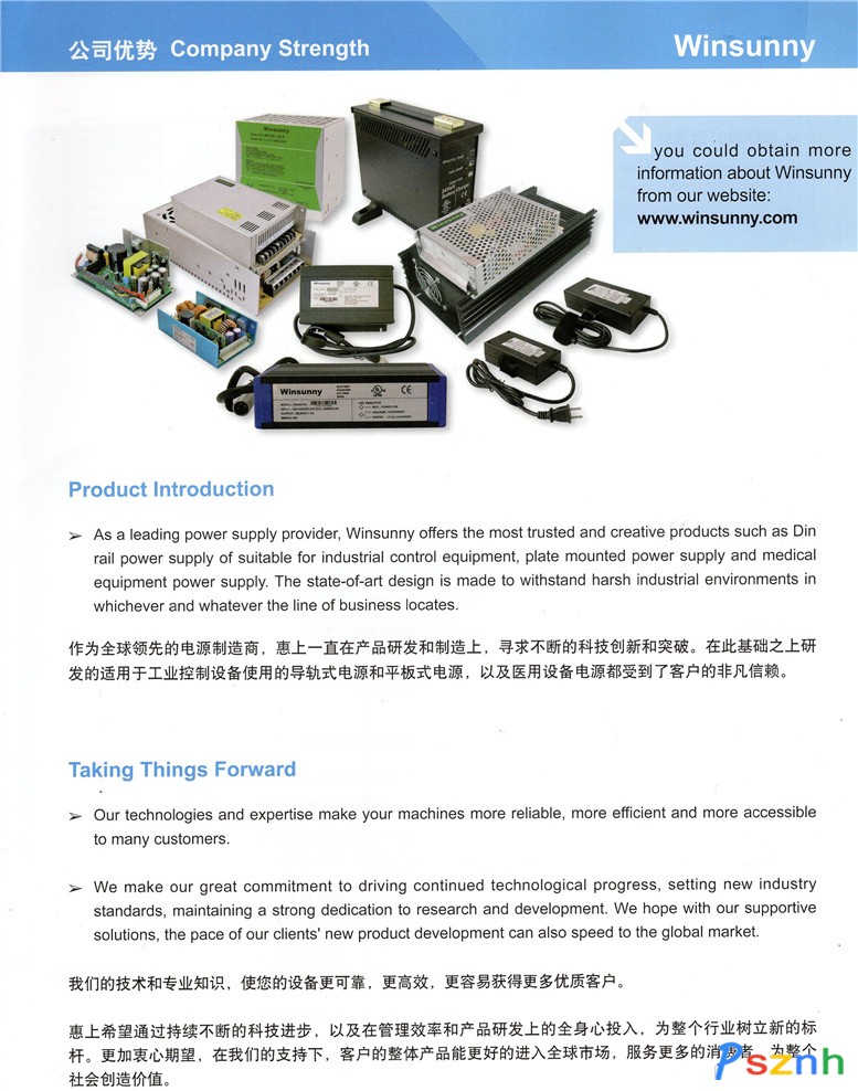 上海惠上電子技術有限公司是一家專注在電源領域內為您提供高新技術設計、高質量產品和超值服務等一攬子解決方案的電源供應商。公司的研發和設計團隊是由一支獲得博士學位的電源專家領銜,并且由多名碩士研究生和本科生等專業技術人員組成的高素質、充滿活力、富有創新精神的技術隊伍。公司電源產品包括AC/DC、DC/DC各種系列200余種,功率包含了從2W至2000W不等,使用環境包括室內、室外、水下,安裝方式包括平板安裝、導軌式安裝、桌面型,等非常長的產品線。惠上一以貫之的理念是,永遠用最先進的技術、最優化的配置、最好的品質、最合理的成本為客戶設計產品解決方案,提供最令人滿意的服務。