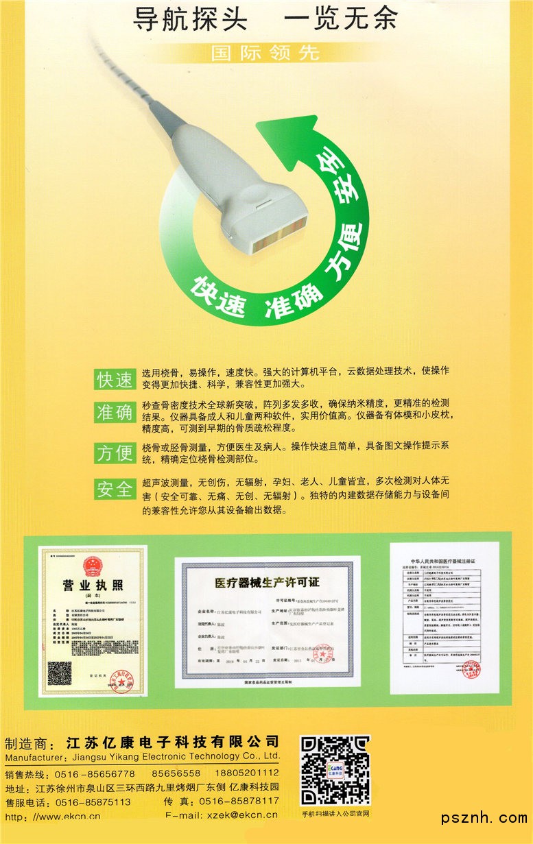 歷經(jīng)二十余年的努力奮斗,注冊生產(chǎn)經(jīng)營產(chǎn)品涵蓋超聲波骨密度儀,超聲經(jīng)顱多普勒血流分析儀、數(shù)子腦電地形圖儀、乳腺病治療儀、心電工作站、數(shù)碼電子陰道鏡、電子宮腔鏡、精子質(zhì)量分析影像工作站、醫(yī)學(xué)影像工作站等產(chǎn)品,其中超聲波骨密度儀等多項(xiàng)注冊產(chǎn)品榮獲國家產(chǎn)權(quán)專利或軟件證書,是國家藥監(jiān)局超聲骨密度行業(yè)標(biāo)準(zhǔn)參與編制單位。