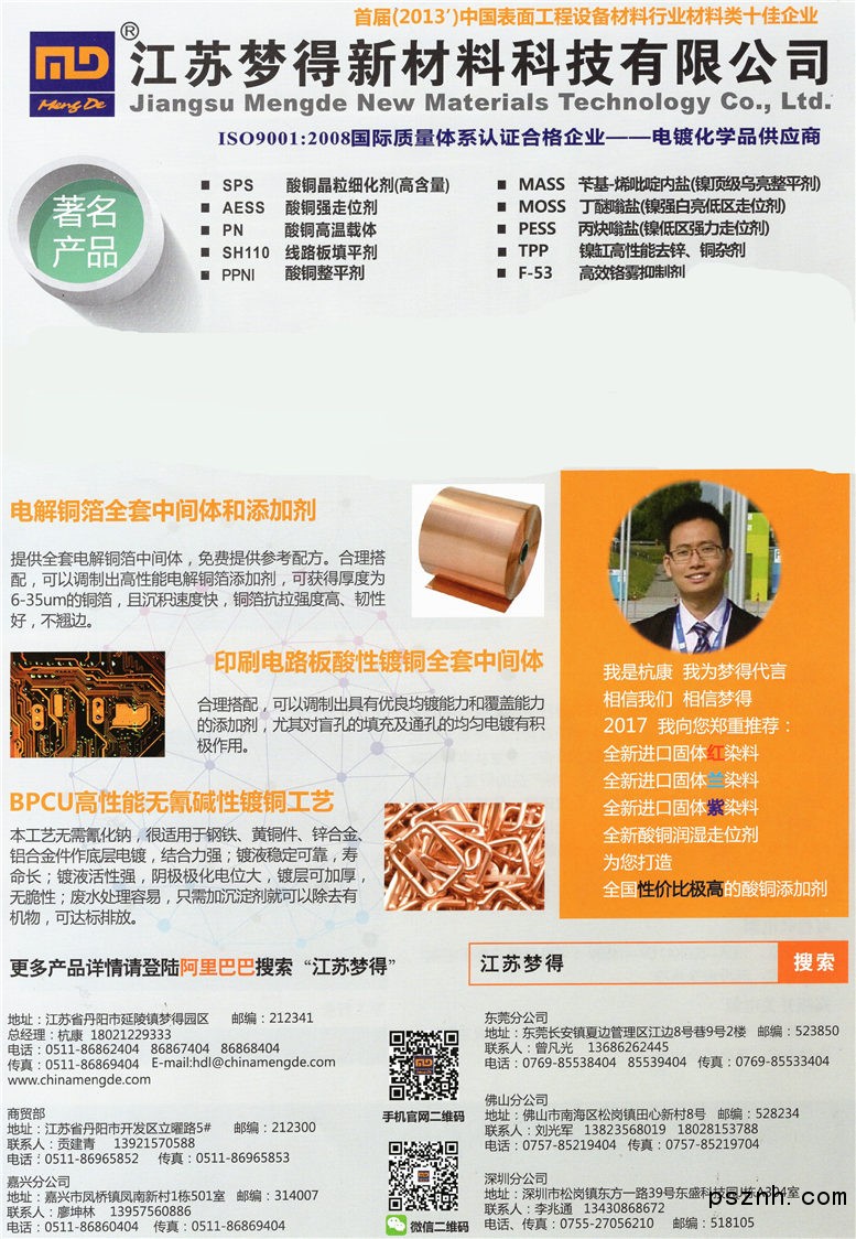 江蘇夢(mèng)得新材料科技有限公司(原江蘇夢(mèng)得電鍍化學(xué)品有限公司)是一家從事電化學(xué)、新能源化學(xué)、生物化學(xué)以及相關(guān)特殊化學(xué)品研發(fā)、生產(chǎn)、銷售的高新技術(shù)企業(yè)。公司成立于1996年,已通過ISO9001:2008版質(zhì)量管理體系認(rèn)證。