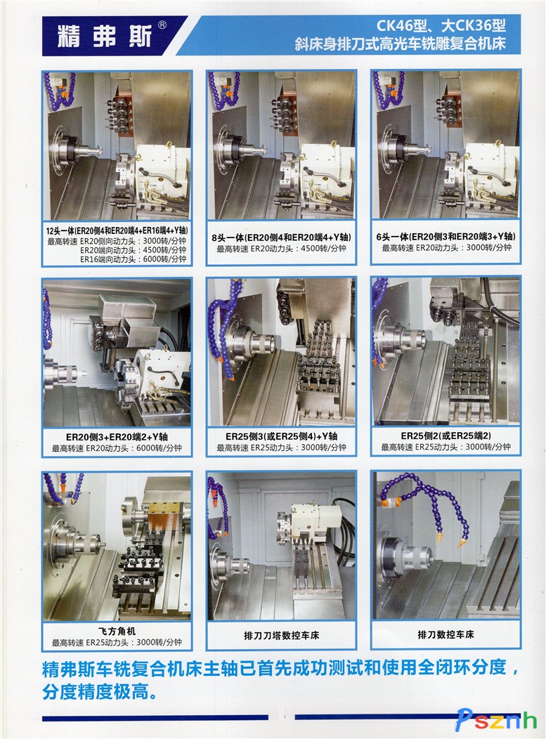 公司以高新技術為依據(jù)、生產(chǎn)高標準、高要求、高檔次、高精度、高光度、高效率、多功能的數(shù)控車床,一次裝夾可完成車、銑、鉆、攻牙等復合加工。