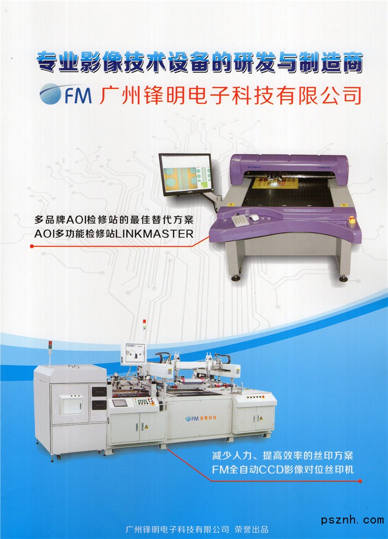 廣州鋒明電子科技有限公司是專業從事PCB設備研發、制造、銷售、維修技術服務的高新技企業。在“弘揚創新、技術為先”理念倡導下,我們引用并吸收國外先進光學科研技術,聯合國內知名的光學科研單位,經過多年長達數百萬次的測試后于2005年成功推出AOI行業內唯一一款自主設計、自主產權、可以兼容聯接 Orbotech、Camtek、Screen、Machvision、Optima(在線式AOI)、Mania的AOI多功能檢修站MULTISTAR,Multistar 可以完全替代昂貴的國外AOI檢修站。經過多年產品升級,升期又重磅推出全新的多功能檢修站linkMASTER, linkMASTER比MULTISTAR功能更強大。