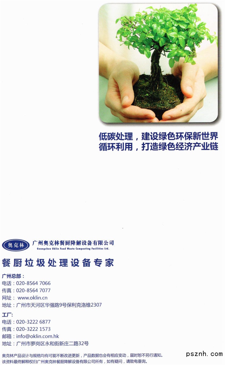 公司不斷努力創(chuàng)新,擴(kuò)大產(chǎn)品服務(wù)范圍,于2011年在中國(guó)廣州永和開(kāi)發(fā)區(qū)成立國(guó)內(nèi)基地,集研發(fā)、生產(chǎn)和經(jīng)營(yíng)于一體,生產(chǎn)不同規(guī)格型號(hào)餐廚降解設(shè)備,從適合于家庭使用至大型商業(yè)場(chǎng)所及市政環(huán)衛(wèi)用途系列,提供餐廚垃圾處理方案,建立綠色循環(huán)經(jīng)濟(jì),創(chuàng)建源頭處理餐廚垃圾運(yùn)作模式,實(shí)現(xiàn)餐廚垃圾處理的減量化、無(wú)害化、資源化目標(biāo)!