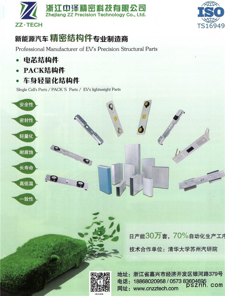 浙江中澤精密科技有限公司是一家新能源汽車精密結構件的專業制造商,公司最早成立于2007年,目前擁有嘉興、深圳兩大生產基地。公司產品覆蓋單體電芯結構件 、PACK結構件、車身輕量化結構件。目前有標準化現代廠房36000平米,員工三百多名。目前單體電芯結構件設備年產能5000萬套,PACK結構件設備年產能2000萬套,客戶涉及新能源汽車生產廠商、PACK生產廠商、電芯生產廠商三大類。2017年公司與清華大學蘇州汽車研究院合作進行“動力電池碰撞安全”及“汽車輕量化”的研究與應用。
