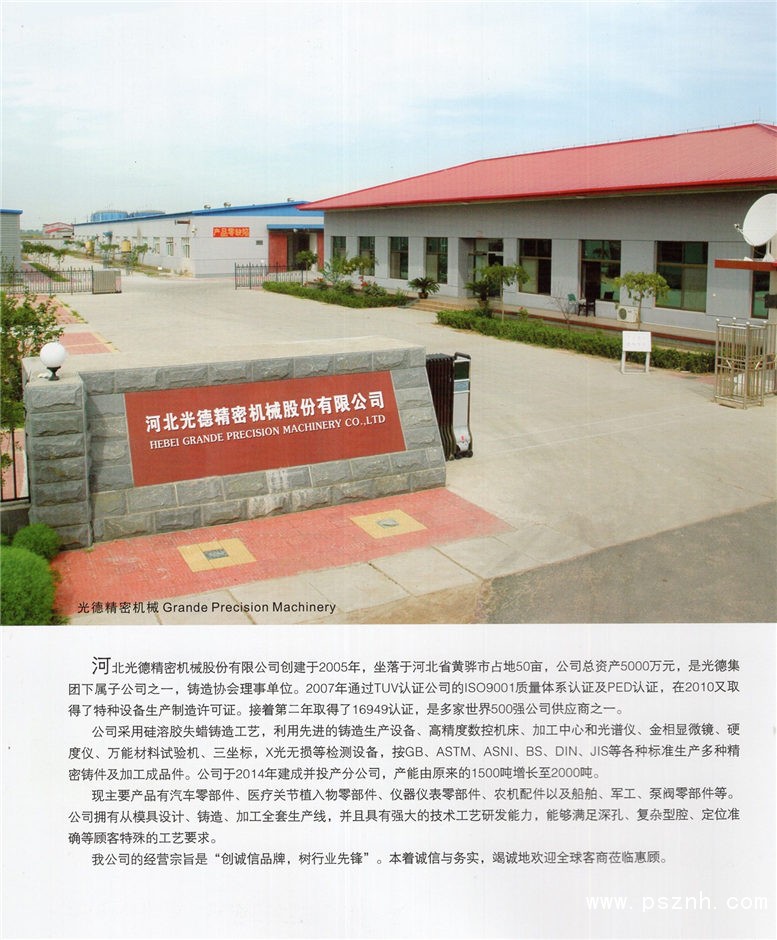 公司采用硅溶膠失蠟鑄造工藝,利用先進的鑄造生產(chǎn)設(shè)備、高精度數(shù)控機床、加工中心和光譜儀、金相顯微鏡、硬度儀、萬能材料試驗機、三坐標(biāo),X光無損等檢測設(shè)備,按GB、ASTM、ASNI、BS、DIN、JIS等各種標(biāo)準生產(chǎn)多種精密鑄件及加工成品件。公司于2014年建成并投產(chǎn)分公司,產(chǎn)能由原來的1500噸增長至2000噸