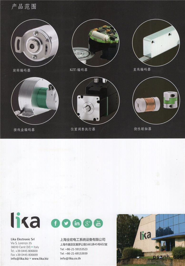 上海全宏電工系統設備有限公司 stands for encoders and position measuring systems. Since its inception in 1982, Lika Electronic develops and manufactures incremental and absolute, optical and magnetic, rotary and linear encoders, incremental & absolute sensors, linear and rotary incremental & absolute magnetic measurement systems, rotary actuators, displays, signal converters and encoder interfaces.