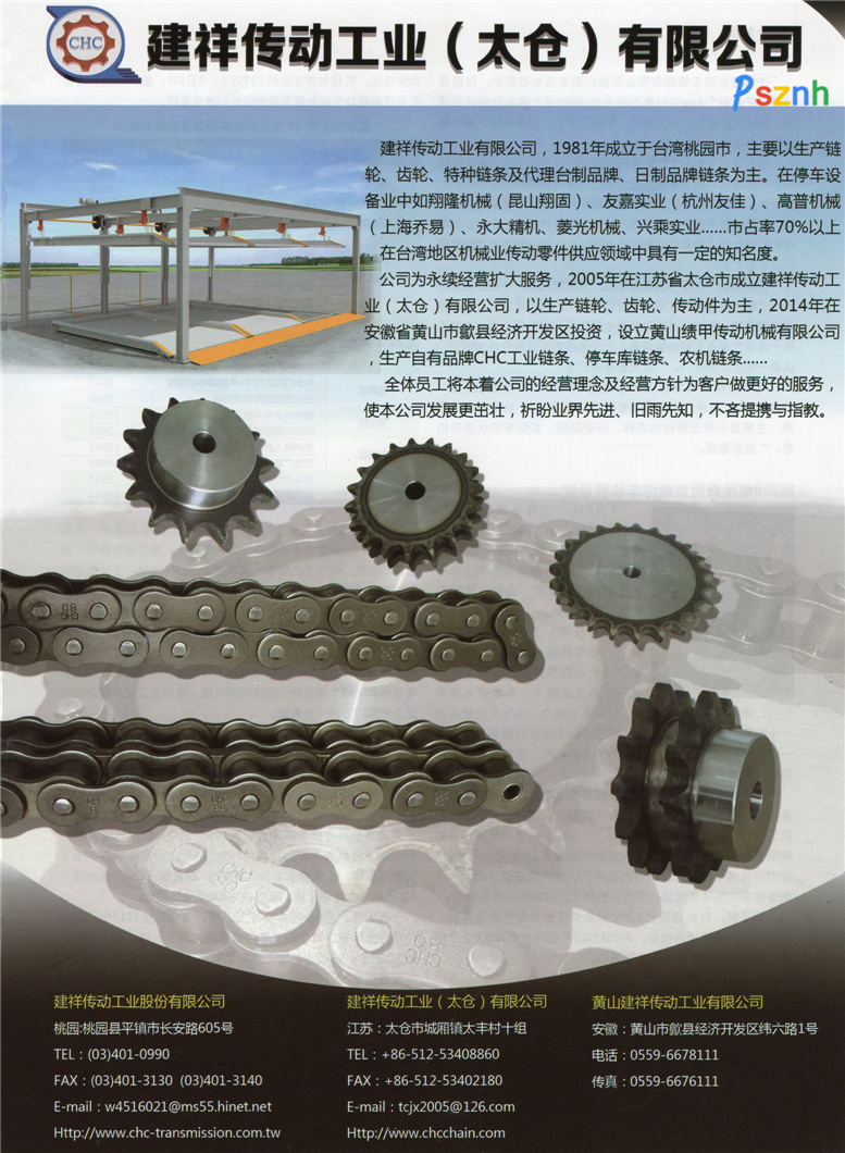 本公司在機械傳動零件領域中已有三十余年的深厚基礎,現臺灣多數的客戶,已在大陸各處設廠,馬永續營銷,于2005年在江蘇省太倉市城廂鎮成立建祥傳動工業I太倉l有限公司,2013年正式投產自有品牌CHC工業滾子鏈條、摩托車鏈條、摩托車鏈輪。全體員工將本著公司的經營理念及經營方針為客戶做更好的服務,使本公司發展更茁壯,祈盼業界先進:舊雨新知,不吝提攜與指教。