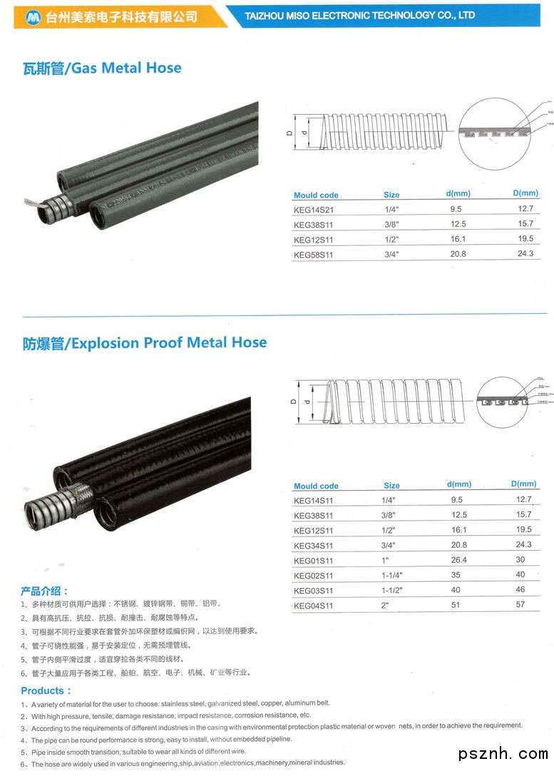 臺州美索電子科技有限公司 單扣金屬軟管_披覆單扣金屬軟管_雙扣金屬軟管