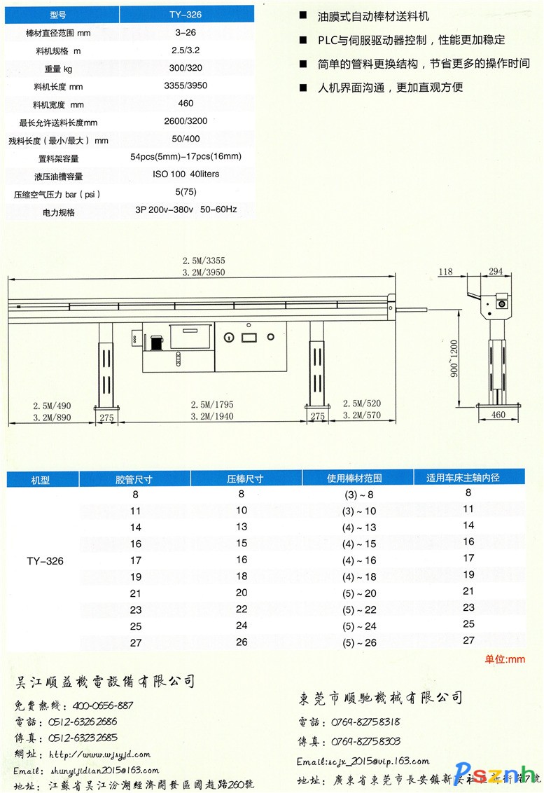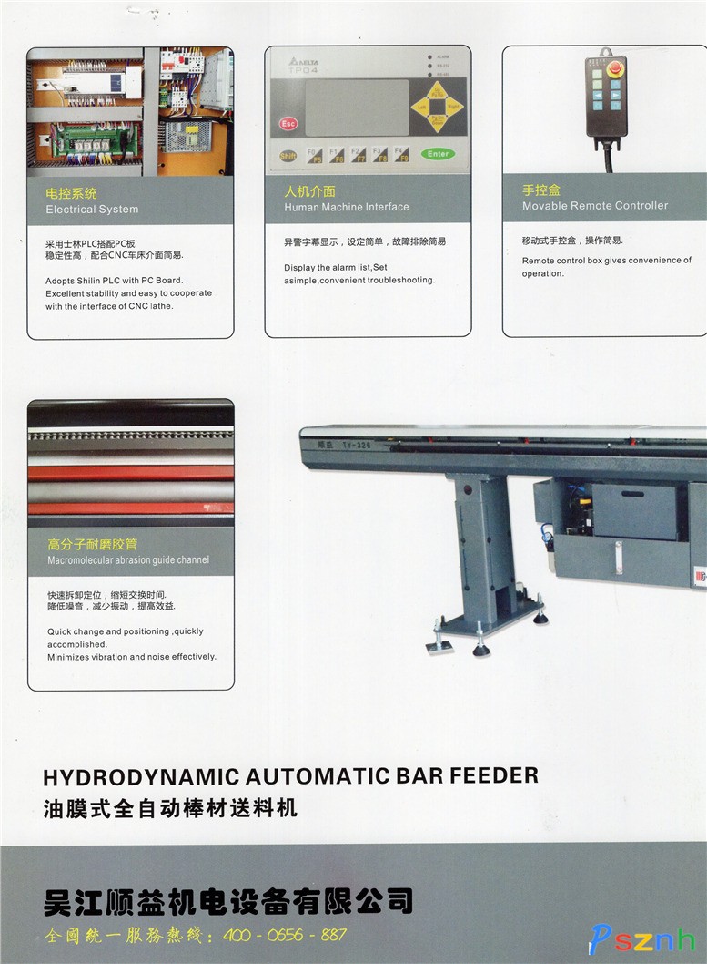 吳江順益機電設備有限公司是自動棒材送料機、送料機五金電器零件等產品專業生產加工的私營獨資企業,公司總部設在吳江市蘆墟鎮汾湖經濟開發區國趙路。公司管理人員從事自動棒材送料機行業已經十年之久,對于送料機的各項性能十分了解。我們擁有強有力的供應商團體,他們有國內頂尖的加工設備,包括激光鐳射、沈陽加工中心和CNC自動車床等。公司秉承服務周到,質量可靠,價格優惠的宗旨,歡迎各單位和個人來電來函,我們將以熱情周到的服務回饋客戶。