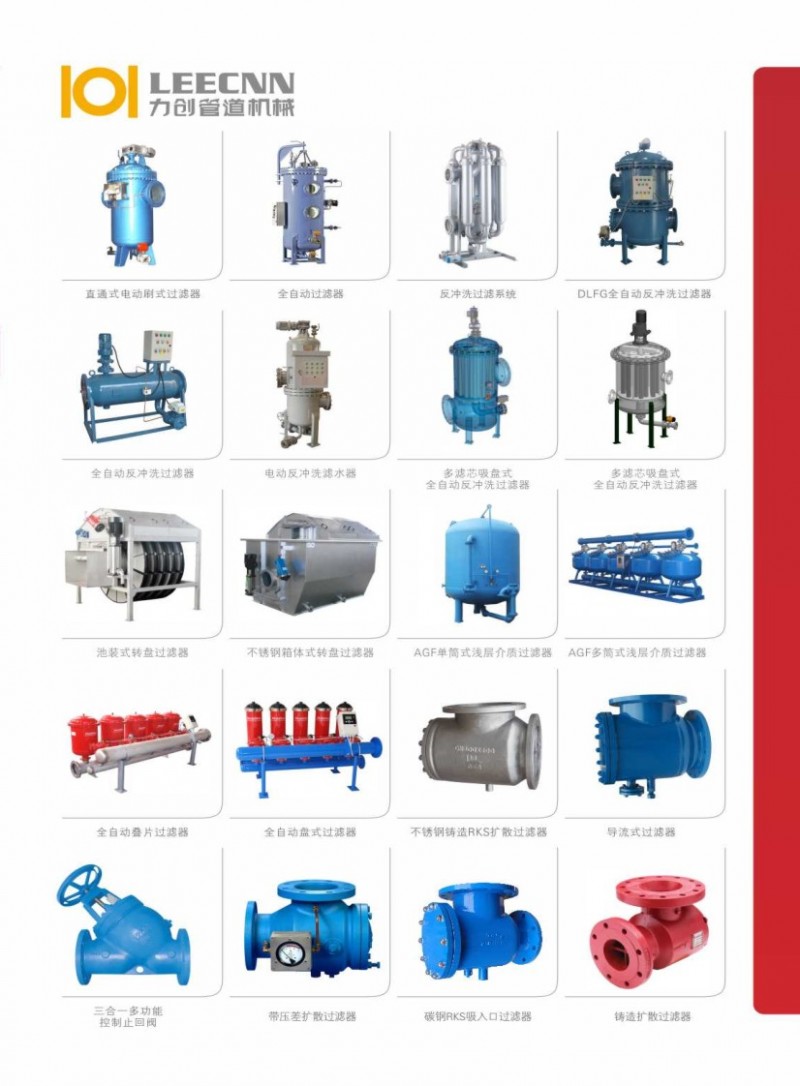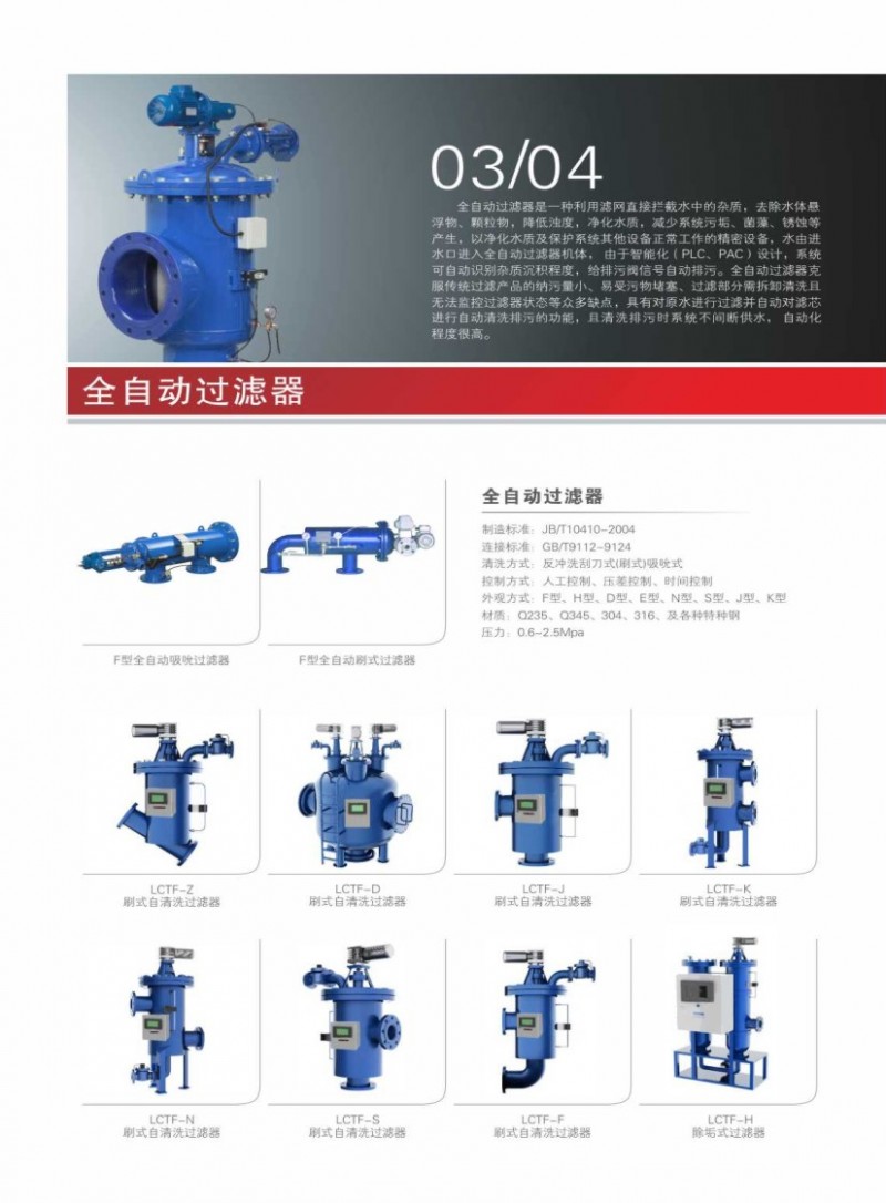 公司成功開發的全自動自清洗過濾系統、全自動反沖洗過濾系統、消氣過濾系統、多濾筒切換過濾系統、復合式呼吸閥、氣缸式排氣閥等產品,體現了“品質、價值、安全、環保”的特征。其質量已達到甚至超過國內同類產品的水準,且極具競爭力與性價比。