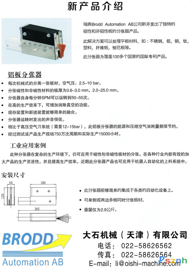 大石機械(天津)有限公司 HYSON氮氣彈簧 PHD氣動夾鉗 PRONIC模內攻絲機 LSP噴涂系統 SCHMALZ真空吸盤