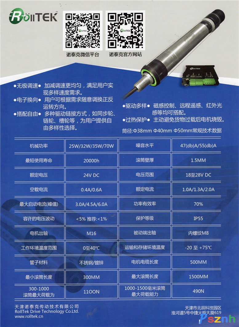 天津諾泰克傳動技術有限公司 皮帶式輸送設備專用微型電動滾筒 Rolltek電動滾筒