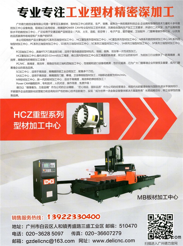 廣州德力數控設備有限公司_FC系列五軸型材加工中心_HC系列三軸重型加工中心_MC系列四軸型材加工中心 智能裝備展3B255
