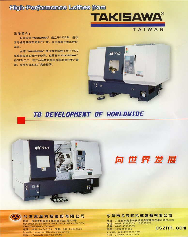 東莞市龍辰暉機械設備有限公司是瀧澤科技股份有限公司在中國大陸設立的唯一銷售服務中心。公司主營日本瀧澤、臺灣瀧澤、上海欣瀧澤CNC數控車床的銷售及維修服務,同時也是臺灣油欣立式車床、日本倉敷臥式鏜銑的中國大陸總代理。