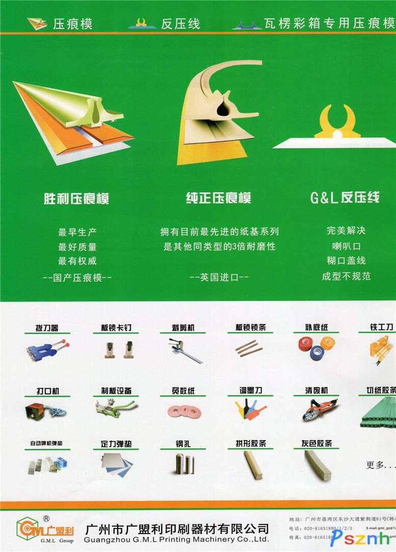廣州市廣盟利印刷器材有限公司_勝利壓痕模_切紙膠條_炮底紙_炮底膠_GMC刮墨刀_奧地利牛頭刀_海綿膠條