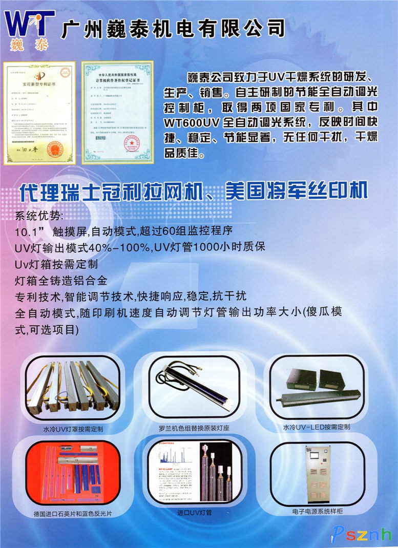 廣州巍泰機(jī)電有限公司是專業(yè)生產(chǎn)銷售各種印刷機(jī)械干燥設(shè)備、進(jìn)口UV 燈管、UV相關(guān)配件的公司,