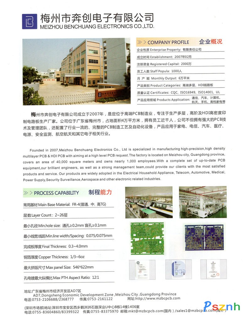 梅州市奔創電子有限公司成立于2007年,是定位于高端PCB制造產業,專注于生產多層,高階及HDI高密度印制板(PCB)的生產廠家。工廠位于廣東省梅州市,廠房占地面積4萬平方米,擁有員工近千人,首期投資額超過2.5億元人民幣。