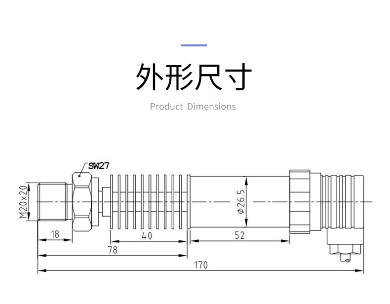 采用不銹鋼溫度隔離構件,進口彈性體原件,高精度應變計及先進的貼片工藝,具有靈敏度高、性能穩定、良好的抗沖擊能力。結構件采用國標304不銹鋼,結構小巧、緊湊,有良好的防潮能力和優異的介質兼容性。